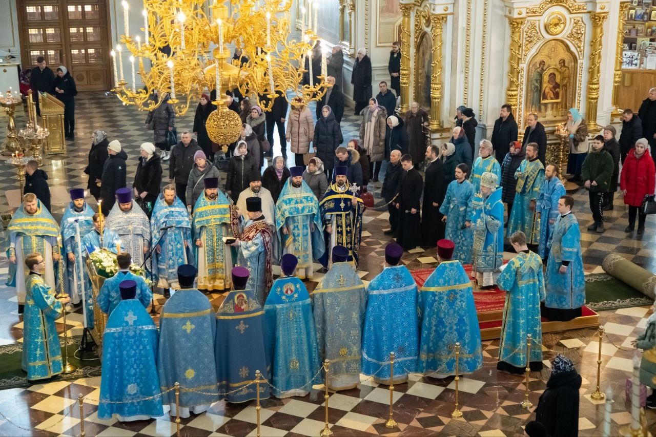 16 февраля, в день открытия форума в кафедральном соборе святого праведного воина Феодора Ушакова Божественную Литургию совершили архиереи Мордовской митрополии в сослужении участников окружного слета в священном сане.