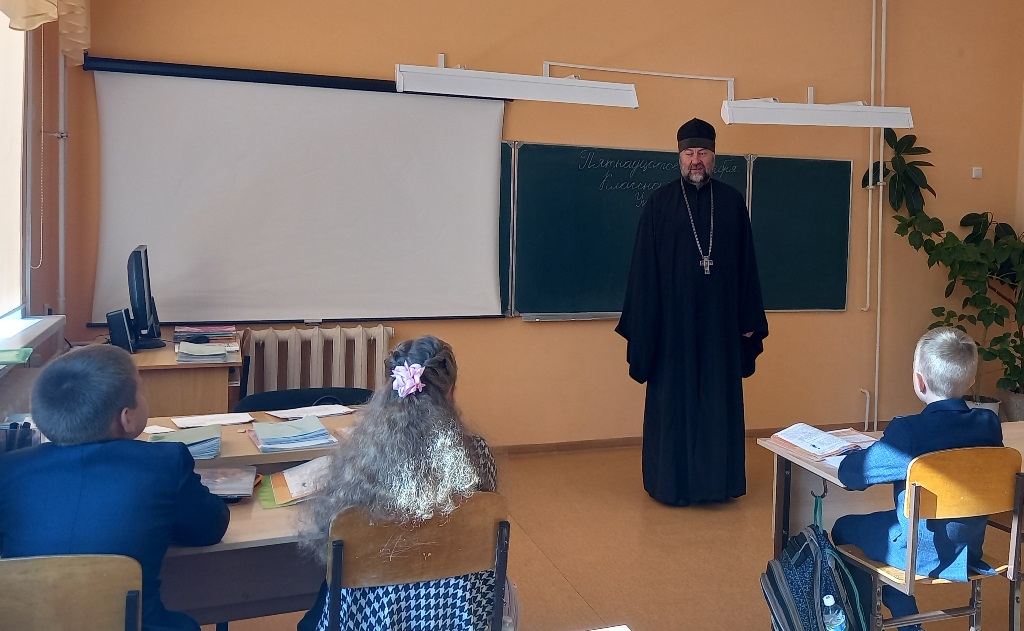 Благочинный Большеигнатовского района протоиерей Александр Никитин посетил открытый урок ОПК 3-а класса МБОУ «Большеигнатовская СОШ».