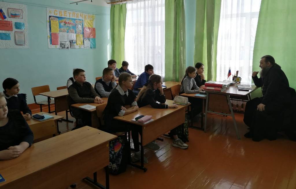 Помощник благочинного Большеберезниковского района протоиерей Виктор Ткаченко провел открытый урок ОДНКНР в 6 классе Большеберезниковской СОШ №2.