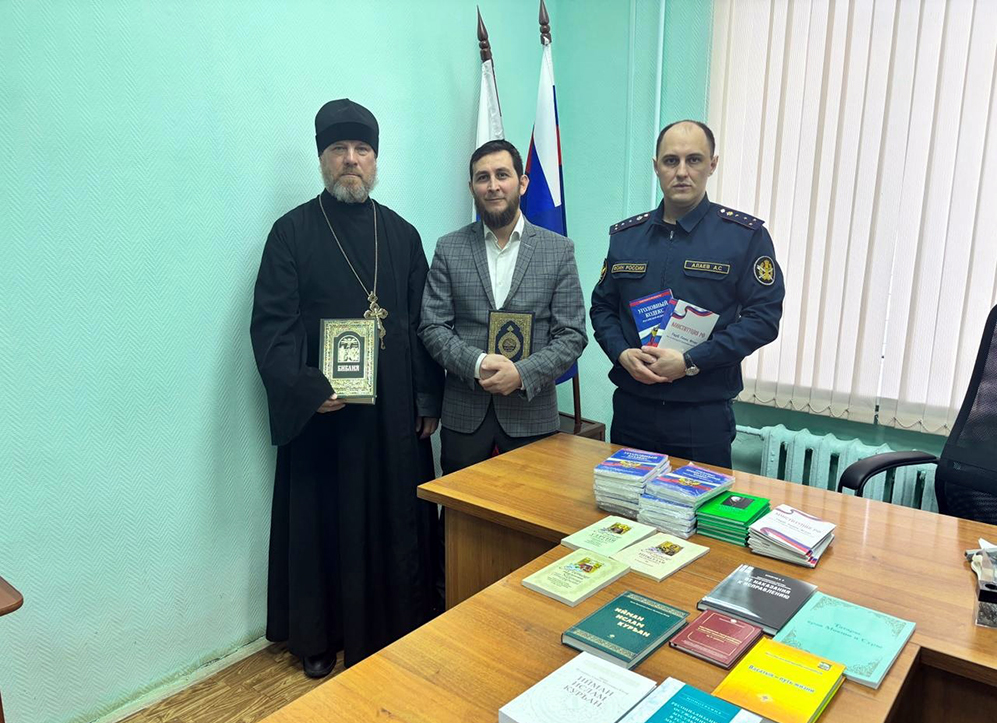 Помимо духовной беседы отец Владимир передал духовную, юридическую и художественную литературу в фонд библиотеки изолятора.
