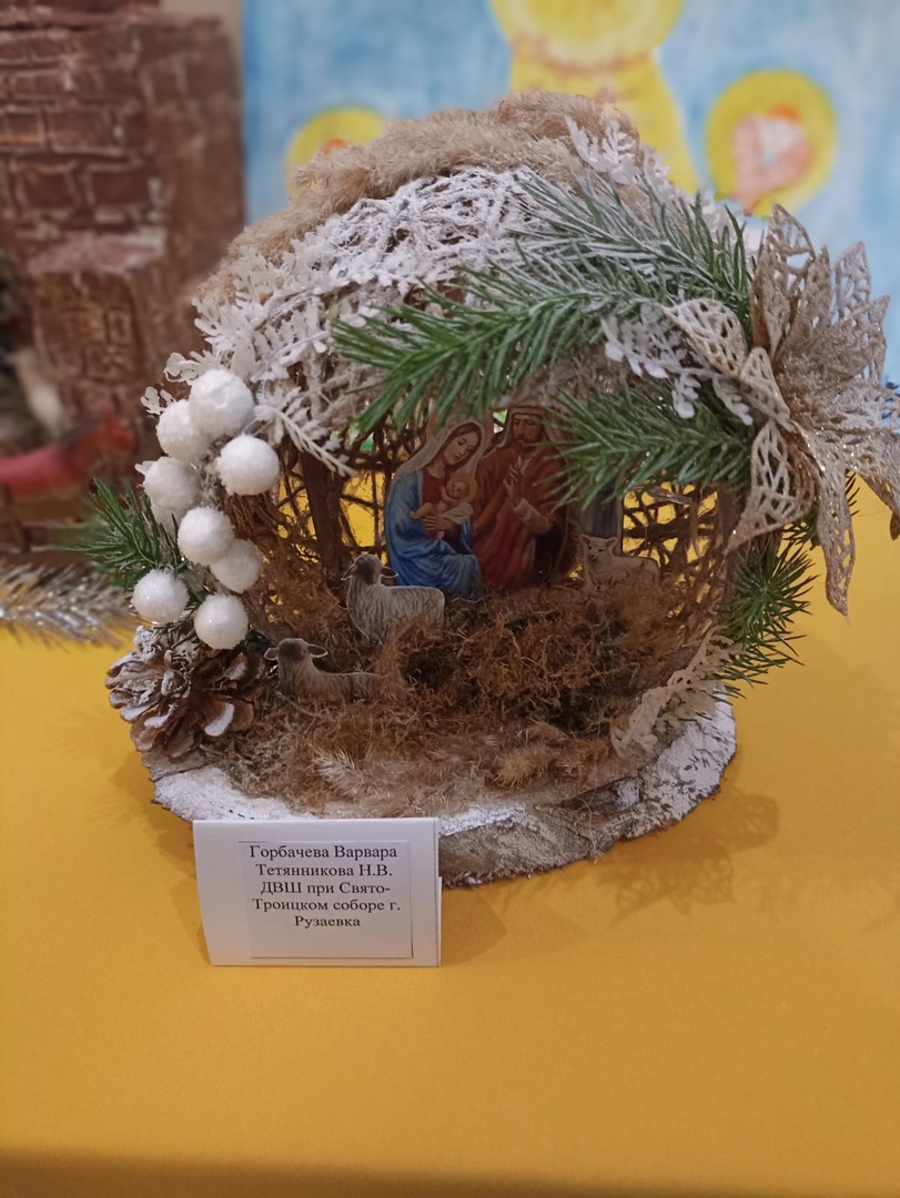 В цокольном этаже кафедрального собора праведного Феодора Ушакова развернулась выставка детских поделок и рисунков "Рождественский подарок".