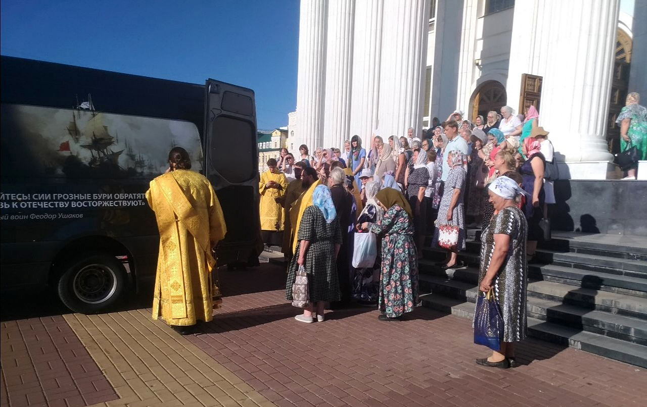 В Саранске молитвенно проводили ковчег со святыми мощами праведного воина Феодора Ушакова