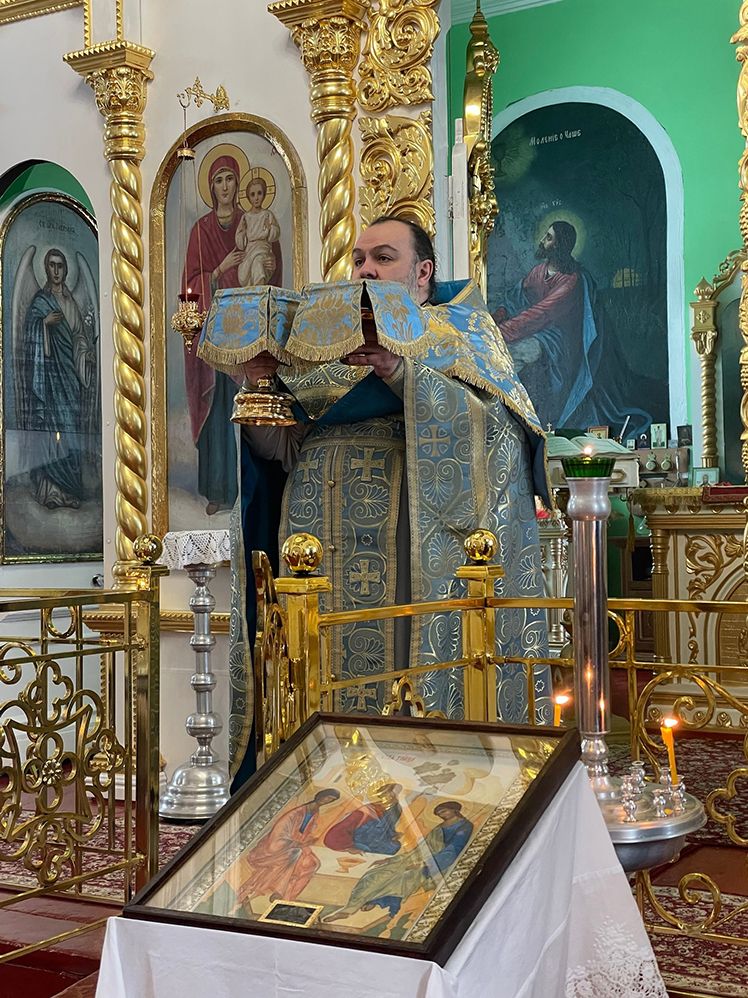 После Литургии в Свято-Троицком храме было совершено славление перед образом с пением особых молитвословий. По окончании службы с проповедью к собравшимся прихожанам обратился настоятель протоиерей Павел Назин. В своем слове он поздравил всех присутствующих с Воскресным днем, пожелав покрова и предстательства Царицы Небесной.