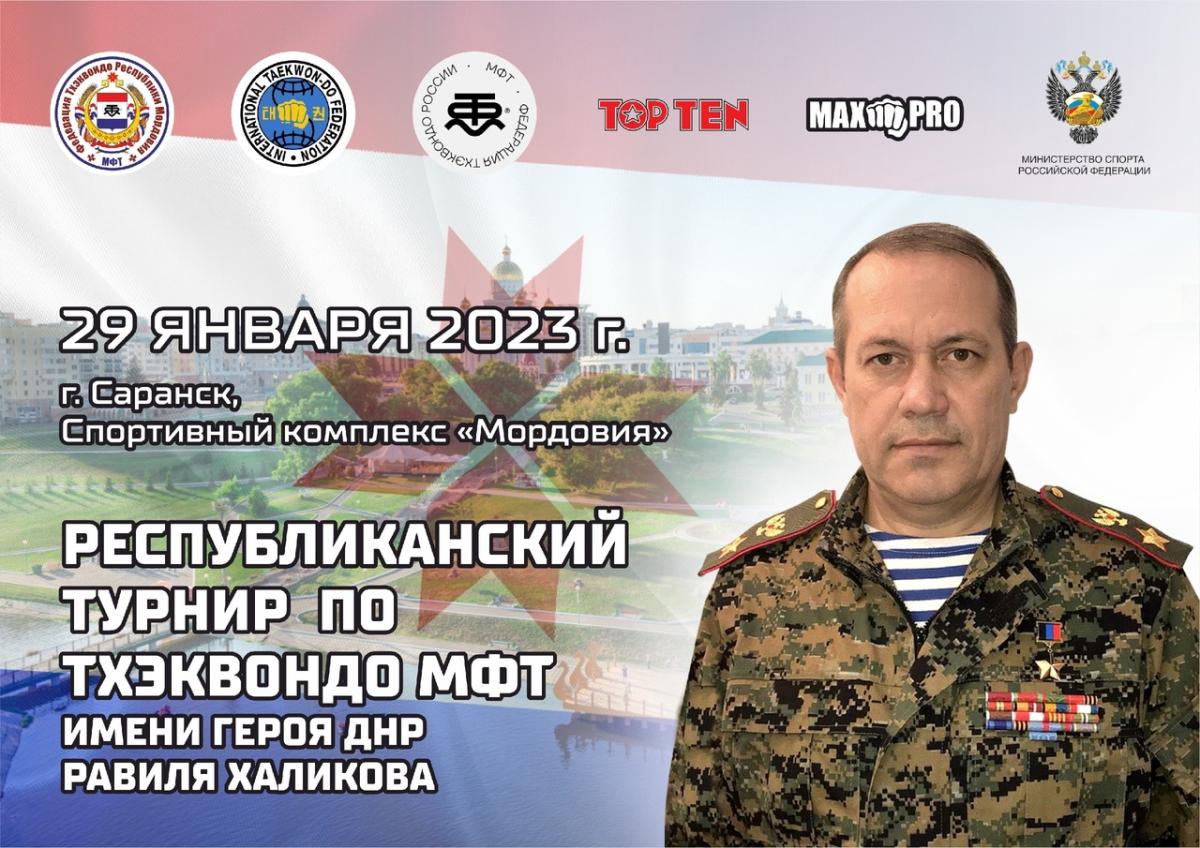 29 января в спортивном комплексе Мордовия состоялся Межрегиональный турнир по тхэквондо МФТ имени героя Донецкой Народной Республики, уроженца Мордовии Равиля Халикова. Соревнования собрали более 200 спортсменов из 5 регионов России. В церемонии торжественного открытия принял участие сам Равиль Халиков, которого председатель Правительства Мордовии Дмитрий Поздняков назвал примером мужества и патриотизма для юных участников соревнований. Также он поздравил всех с открытием турнира от имени Главы республики Артёма Здунова.