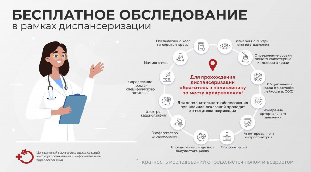 Каждый человек должен периодически проходить диспансеризацию. Диспансеризация — это комплекс профилактических мероприятий. Он включает в себя как плановый медицинский осмотр, так и ряд дополнительных методов обследования. Их назначают индивидуально, если выявляют патологии на первом этапе обследования.