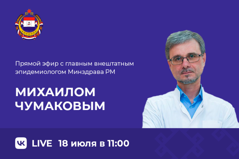 18 июля в 11:00 в паблике «Республика Мордовия» ВКонтакте главный внештатный эпидемиолог Министерства здравоохранения РМ Михаил Чумаков расскажет об эпидемиологической ситуации в регионе.