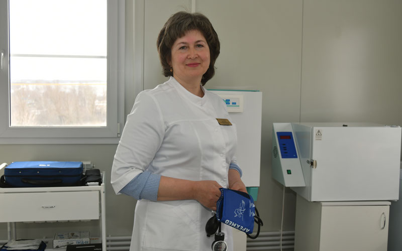 В новом ФАПе радует глаз компактность и рациональность помещений. Кроме служебного, это санузел, процедурный кабинет, кабинет приема пациентов, хозяйственное помещение и просторный холл, в котором нашлось место для зеркала, вешалки, кушетки. В медпункте — специализированная мебель, оборудование и инструменты, для маленьких пациентов — пеленальный столик, весы и ростомер.