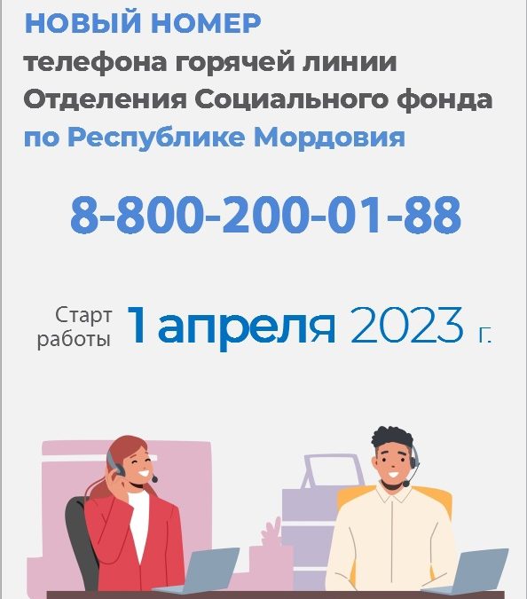 С 1 апреля 2023 года обновлен номер телефона горячей линии Отделения Социального фонда России по Республике Мордовия.