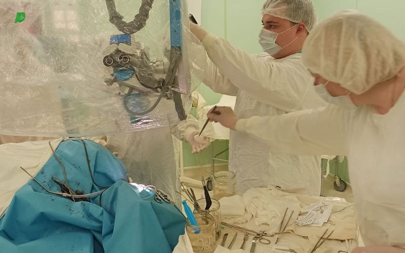 — Сложность была в том, что через опухоль проходили нервы: лицевой, глазодвигательный, — рассказывает заведующий нейрохирургическим отделением Республиканской клинической больницы №4 Сергей Сафронский (который и выполнял операцию). — Травматизация этих нервов была бы чревата грубыми неврологическими осложнениями, к примеру, перекосом лица. К тому же опухоль находилась рядом с участками головного мозга, отвечающими за жизненно важные функции организма: за сердечно-сосудистый и дыхательный центры. Так что работа была тонкой, ювелирной: микрохиругической. Операция выполнялась под микроскопом, через небольшое отверстие в черепе. Наша работа продолжалась больше 3 часов — и завершилась успешно. Сейчас пациентка чувствует себя гораздо лучше, переведена из реанимации в обычную палату на долечивание, находится под наблюдением врачей.