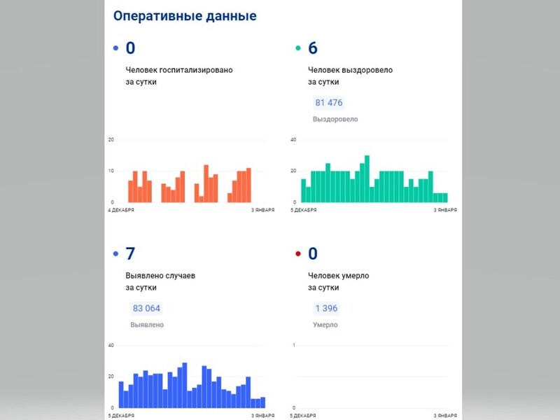 По данным портала стопкоронавирус.рф на 12:00 3 января, в республике с начала пандемии зафиксировано 83 064 случая заражения ковидом, выздоровели 81 476 человек, 1396 — скончались.