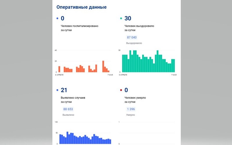 По данным портала стопкоронавирус.рф на 7 мая, в республике с начала пандемии зафиксировано 88 653 случая заражения ковидом, выздоровели 87 040 человека, 1396 — скончались.