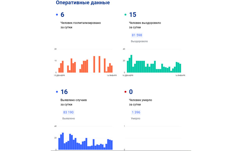 По данным портала стопкоронавирус.рф на 14 января, в республике с начала пандемии зафиксировано 83 190 случаев заражения ковидом, выздоровели 81 598 человек, 1396 — скончались.