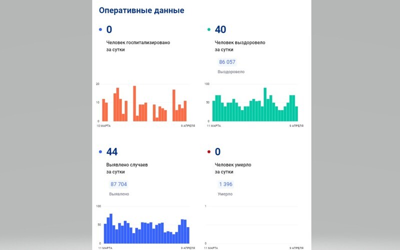 По данным портала стопкоронавирус.рф на 9 апреля, в республике с начала пандемии зафиксировано 87 704 случая заражения ковидом, выздоровели 86 057 человек, 1396 — скончались.