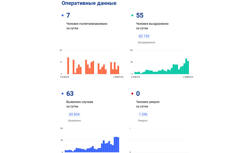 По данным портала стопкоронавирус.рф на 4 февраля, в республике с начала пандемии зафиксировано 83 831 случая заражения ковидом, выздоровели 82 153 человека, 1396 — скончались.