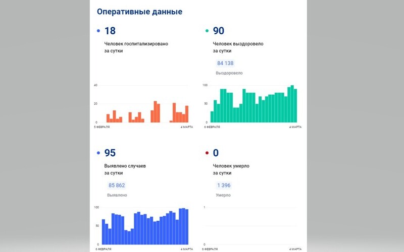 По данным портала стопкоронавирус.рф на 4 марта, в республике с начала пандемии зафиксировано 85 862 случая заражения ковидом, выздоровели 84 138 человек, 1396 — скончались.